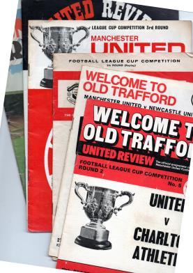 16 different MAN UTD home LEAGUE CUP programmes 1969-1982 (see issue 297)